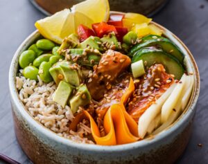 Si no consumes huevo, puedes sustituirlo por tofu marinado, tempeh, garbanzos especiados o incluso lentejas cocidas. La estructura del bowl será la misma, solo cambia la fuente de proteína.